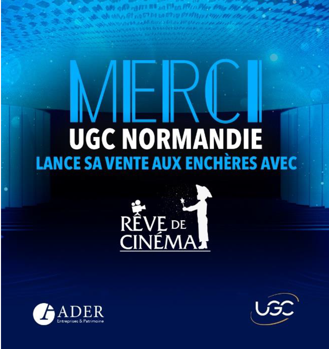 La vente comprend notamment les fauteuils mythiques de la salle Grand Normandie, les lettres de l’enseigne de la façade ainsi que des photos d’acteurs et réalisateurs. Les lots ont été mis en ligne ce lundi 3 juin, et la vente aura lieu le 13 juin à 14h à l’UGC Normandie – avec possibilité de participer en ligne. À noter que ces enchères sont opérées par Ader Entreprises & Patrimoine, la première maison de ventes dédiée à la valorisation du patrimoine des entreprises et des institutions.