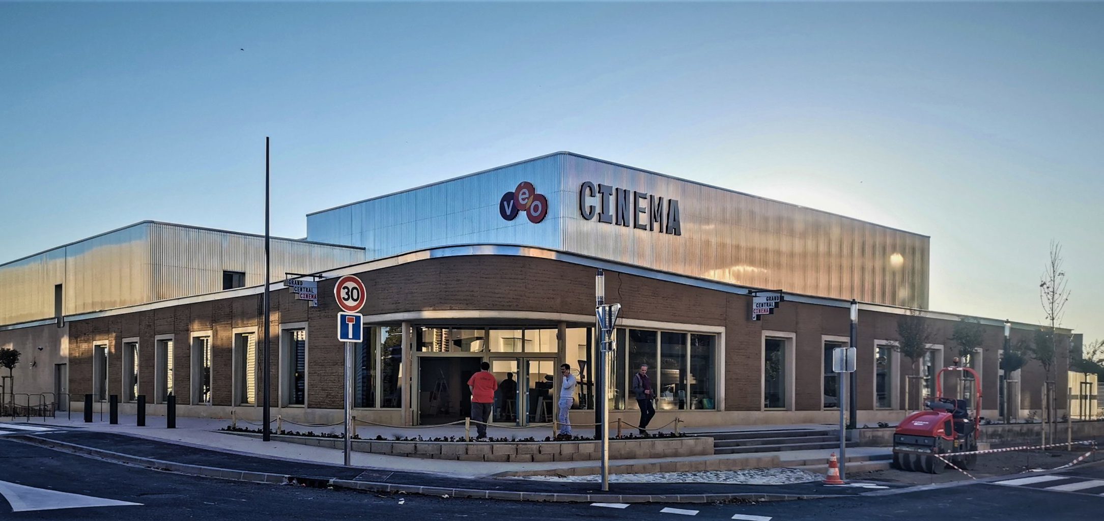 Entre son auvent et sa petite réhausse et le métal utilisé pour habiller les salles, « le Grand Central rappelle les tableaux d’Edward Hopper », s’émerveille Jean Villa, directeur de Véo Cinémas, avant de décrire la technique ancestrale des murs en pisé, élevés par tassement de terre argileuse « qui n’a donc pas été chauffée, sans liant, ni ciment, ni chaux, ni paille ; juste de l’argile brute ».