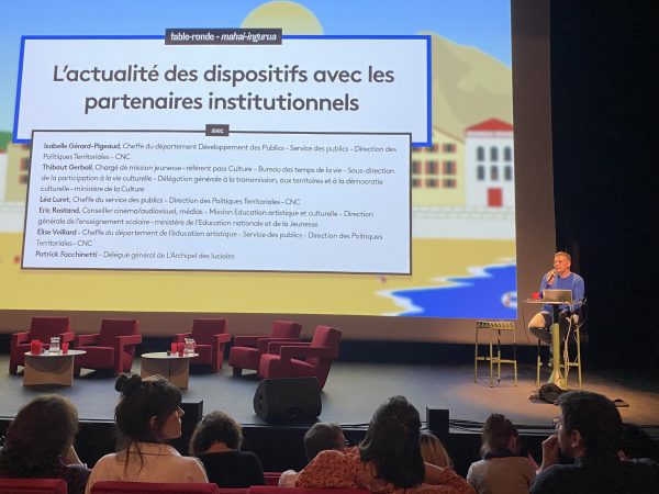 Du côté du CNC, Laurent Vennier, nouveau directeur des politiques territoriales, a bien rappelé combien l’éducation aux images reste « la pierre angulaire de l’action du Centre », avec notamment le déploiement national en 2023 de Maternelle au cinéma, d’Étudiants au cinéma et de Toute la lumière sur les Segpa, et l’objectif de doubler le nombre de médiateurs à travers les conventions État/Régions. Et il a affirmé que « L’accès aux œuvres, dans toute leur diversité, aux lieux culturels, y compris en matière de transports, doit être renforcé. Mais aussi l’accès, pour tous les enseignants et médiateurs, aux formations et ressources nécessaires, pour que l’accompagnement des enfants et des jeunes puisse se faire toujours avec le même niveau d’exigence et de qualité. Le CNC est à vos côtés sur l’ensemble de ces sujets. »